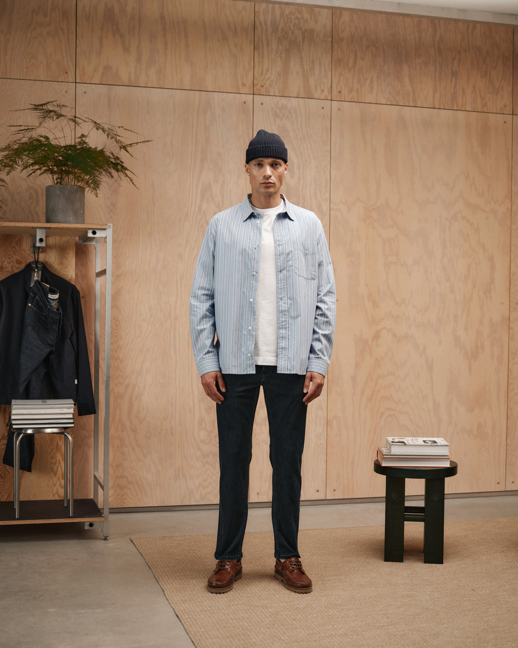 Classic striped shirt with a soft, brushed surface. The Sven Reg Clo LS in Blue Stripe is crafted from 100% cotton, offering superior comfort and long-lasting quality. The lightly brushed, yarn-dyed fabric adds softness and character, while the regular fit, classic collar, and full-length button placket make it a versatile everyday staple.